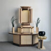 The SU-50 Butsudan boasts a modern, yet simple look equipped with a top-mounted fluorescent light. The butsudan also comes with a cleverly designed base stand which raises the butsudan and at the same time accentuates its appearance. The SUT-50 Stand features easy-to-open front doors with push-in magnetic catches (doors open with a simple push). Inside you will find a spacious interior that can be used as a storage area.